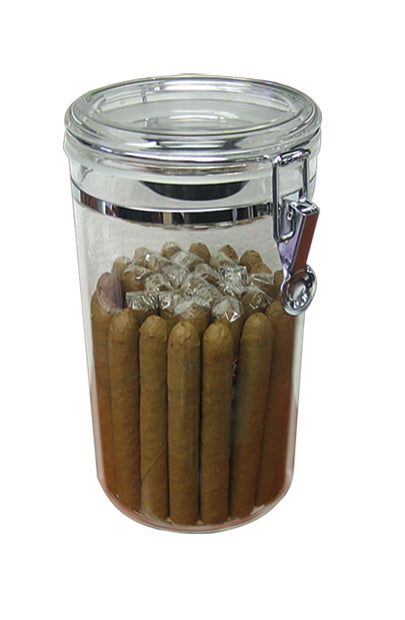 Experience the luxury of storing and preserving your cigars with The Acrylic Jar. Crafted from durable acrylic, this jar boasts an air-tight locking lid with a latch to keep your cigars fresh and secure. With the added humidifier, you can enjoy a perfect smoke every time. Elevate your cigar game now!