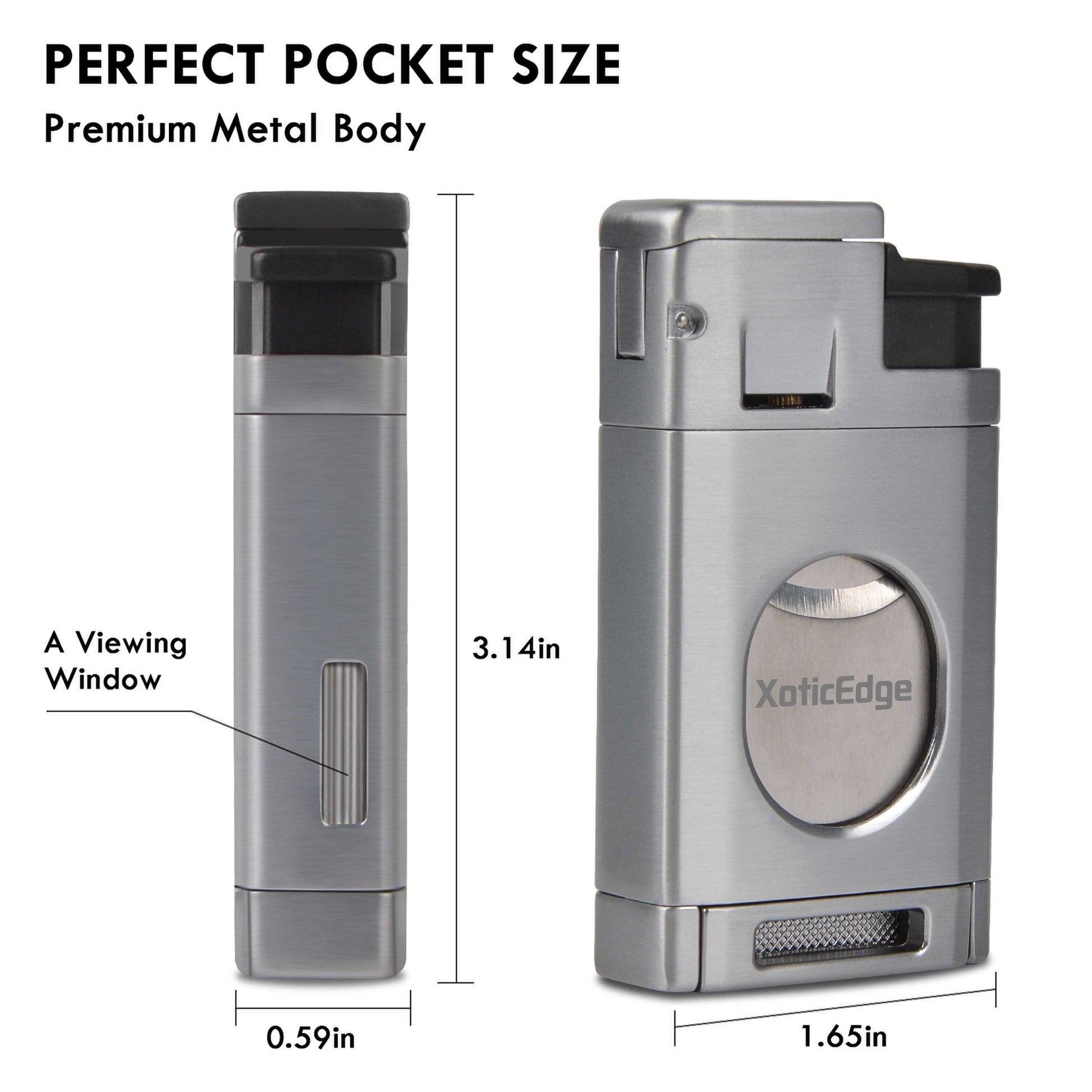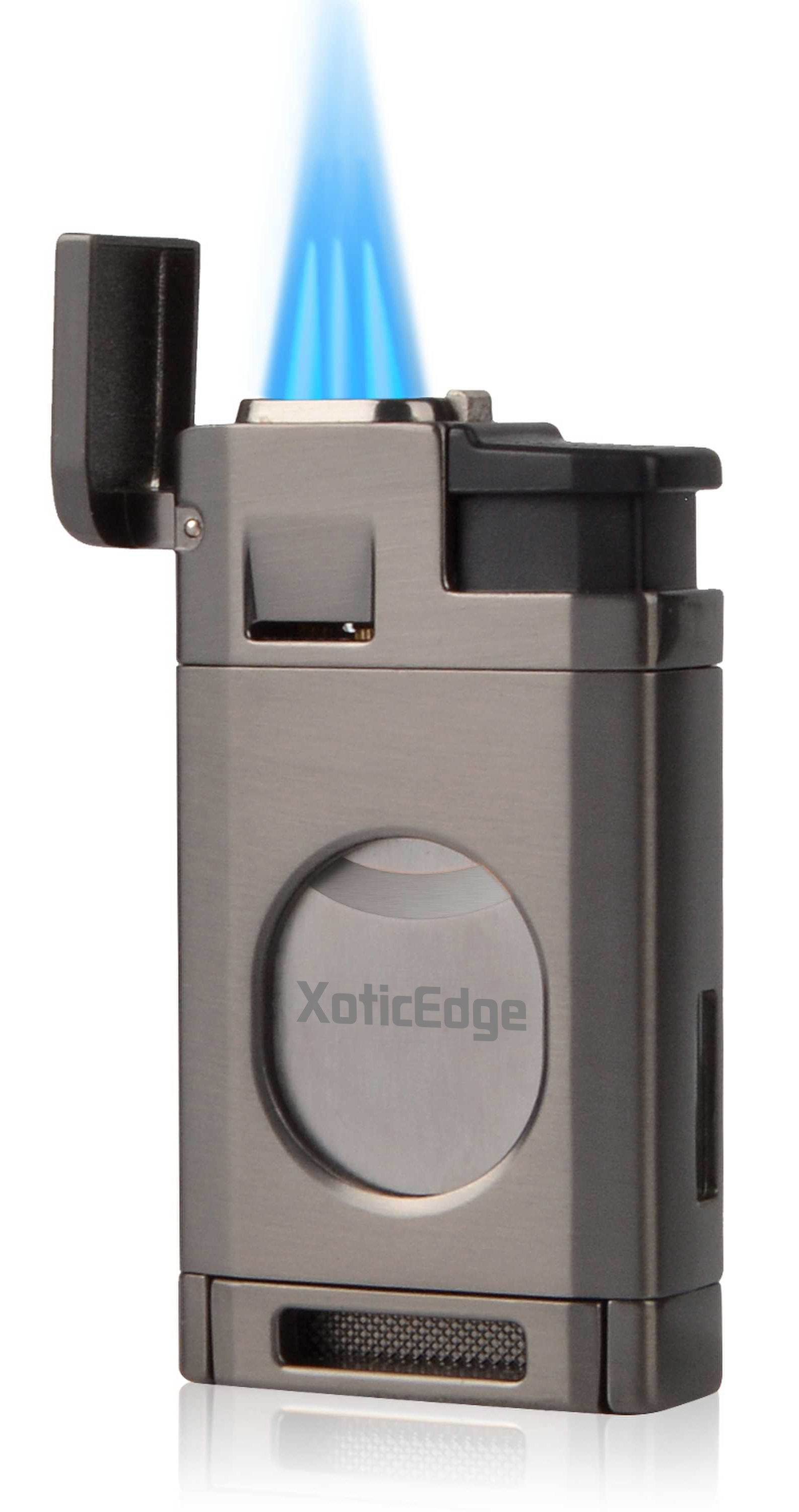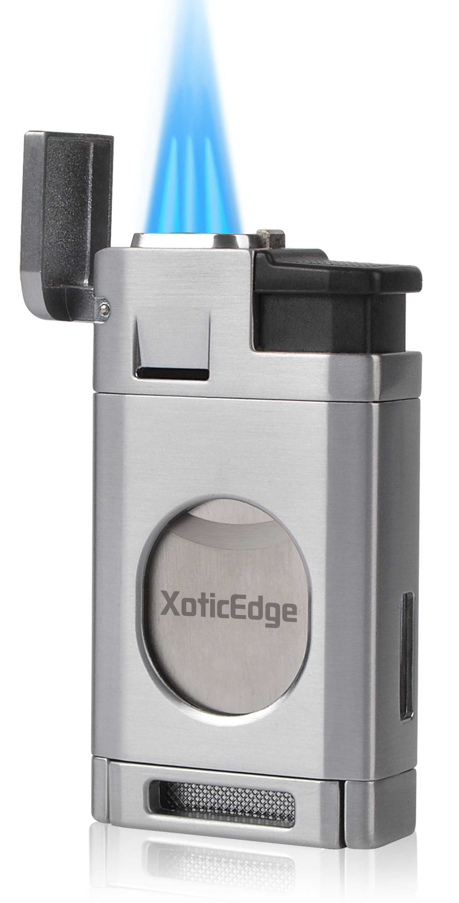 Experience the exceptional quality and performance of The Aurora Torch. Its triple flame torch provides a powerful and consistent flame for a perfect light every time. With an adjustable flame height and solid weight for a comfortable grip, this torch also features a built-in double blade guillotine for a clean cut. Presented in a quality gift box, it makes a perfect gift for any cigar lover. Available in gun metal, black stone, and silver.