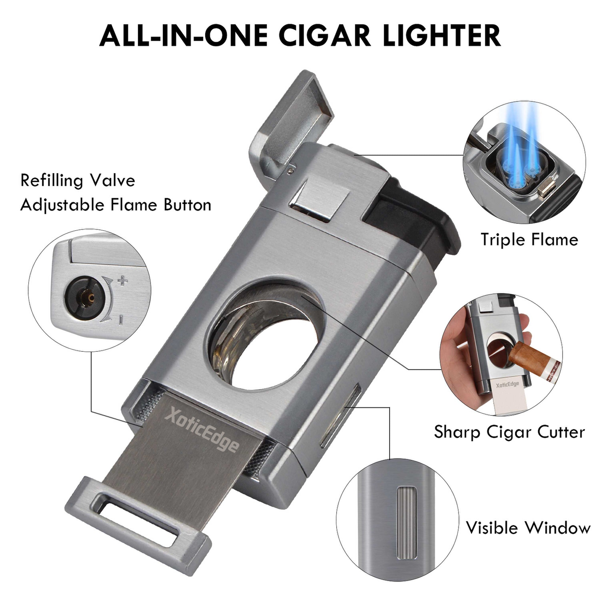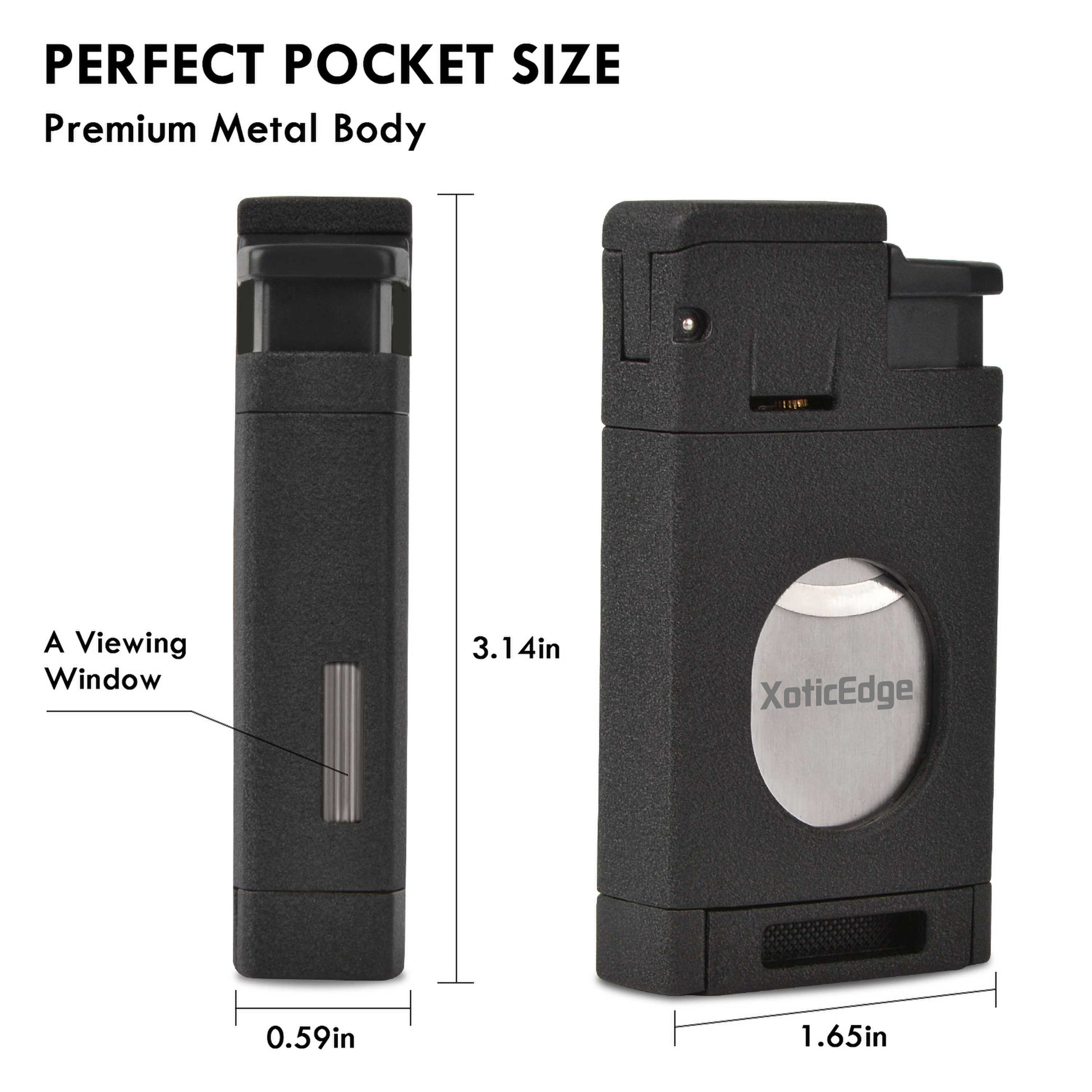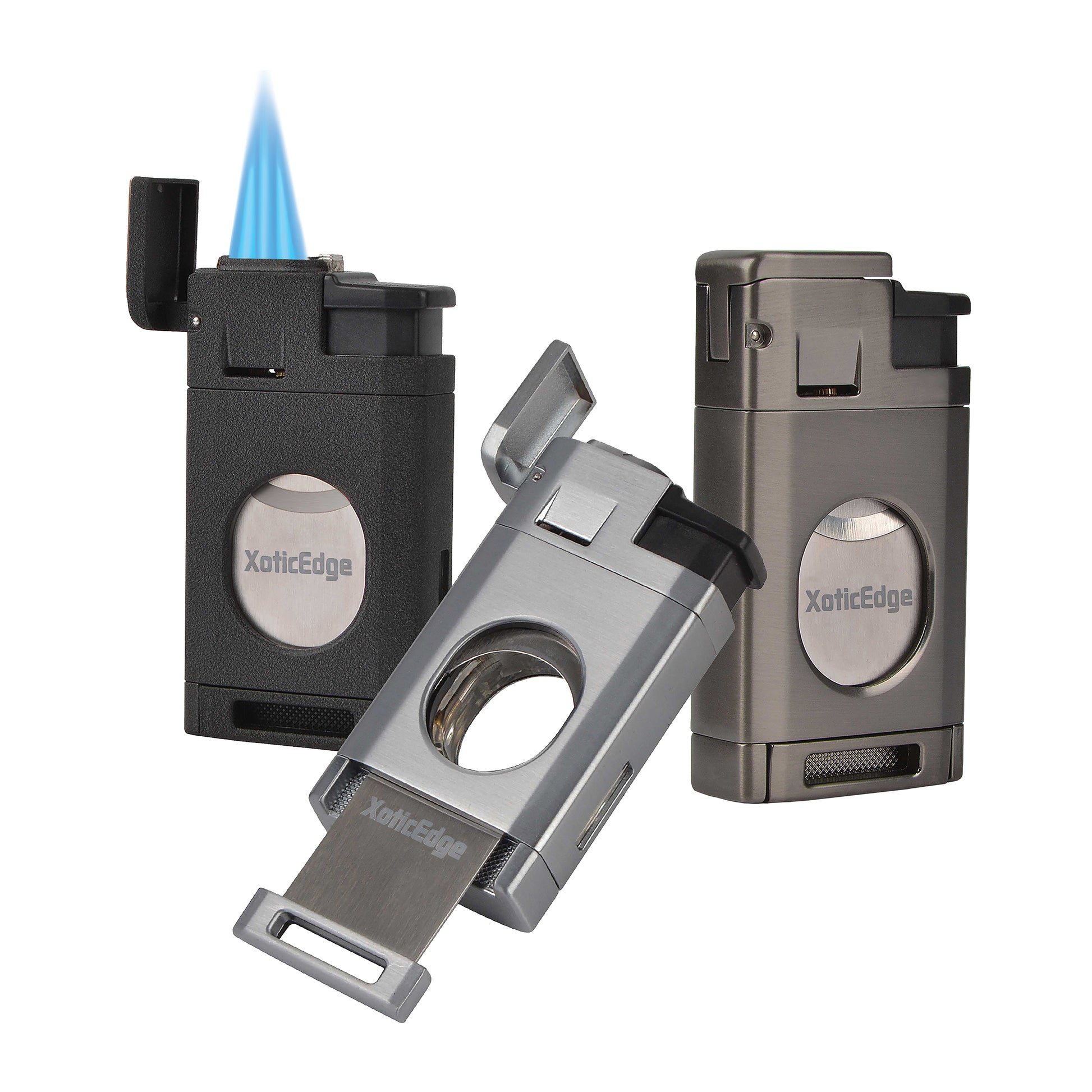 Experience the exceptional quality and performance of The Aurora Torch. Its triple flame torch provides a powerful and consistent flame for a perfect light every time. With an adjustable flame height and solid weight for a comfortable grip, this torch also features a built-in double blade guillotine for a clean cut. Presented in a quality gift box, it makes a perfect gift for any cigar lover. Available in gun metal, black stone, and silver.