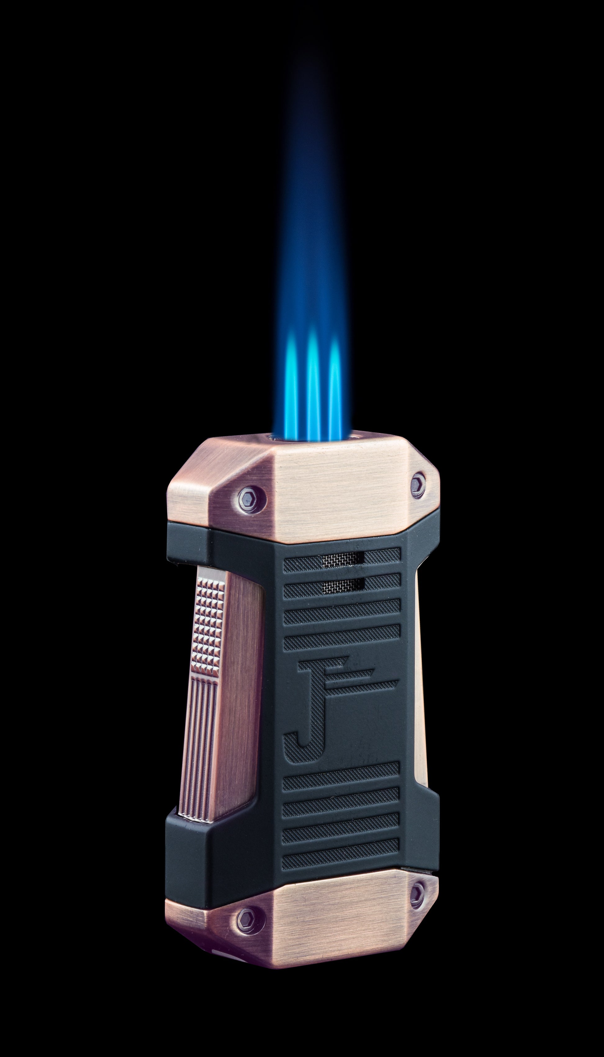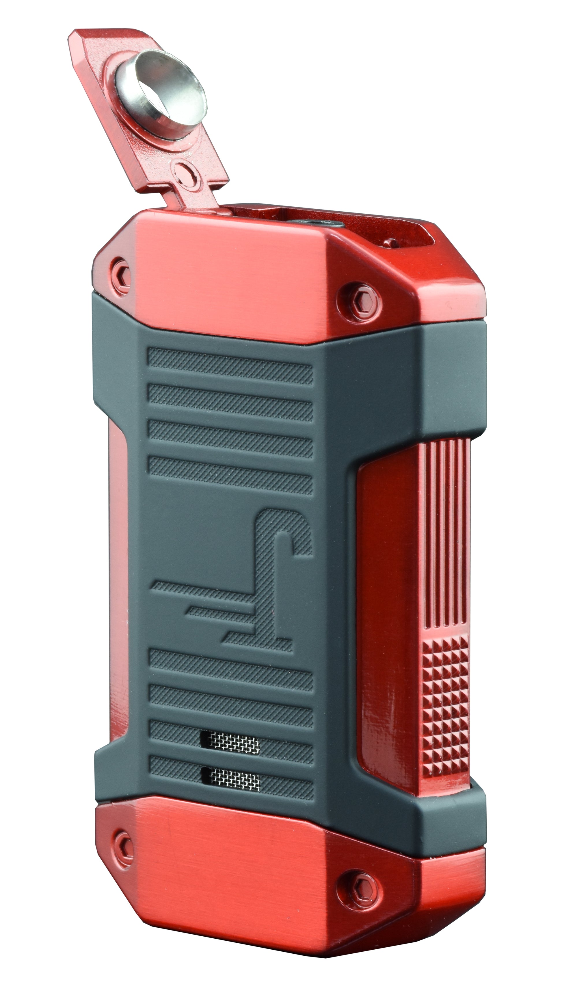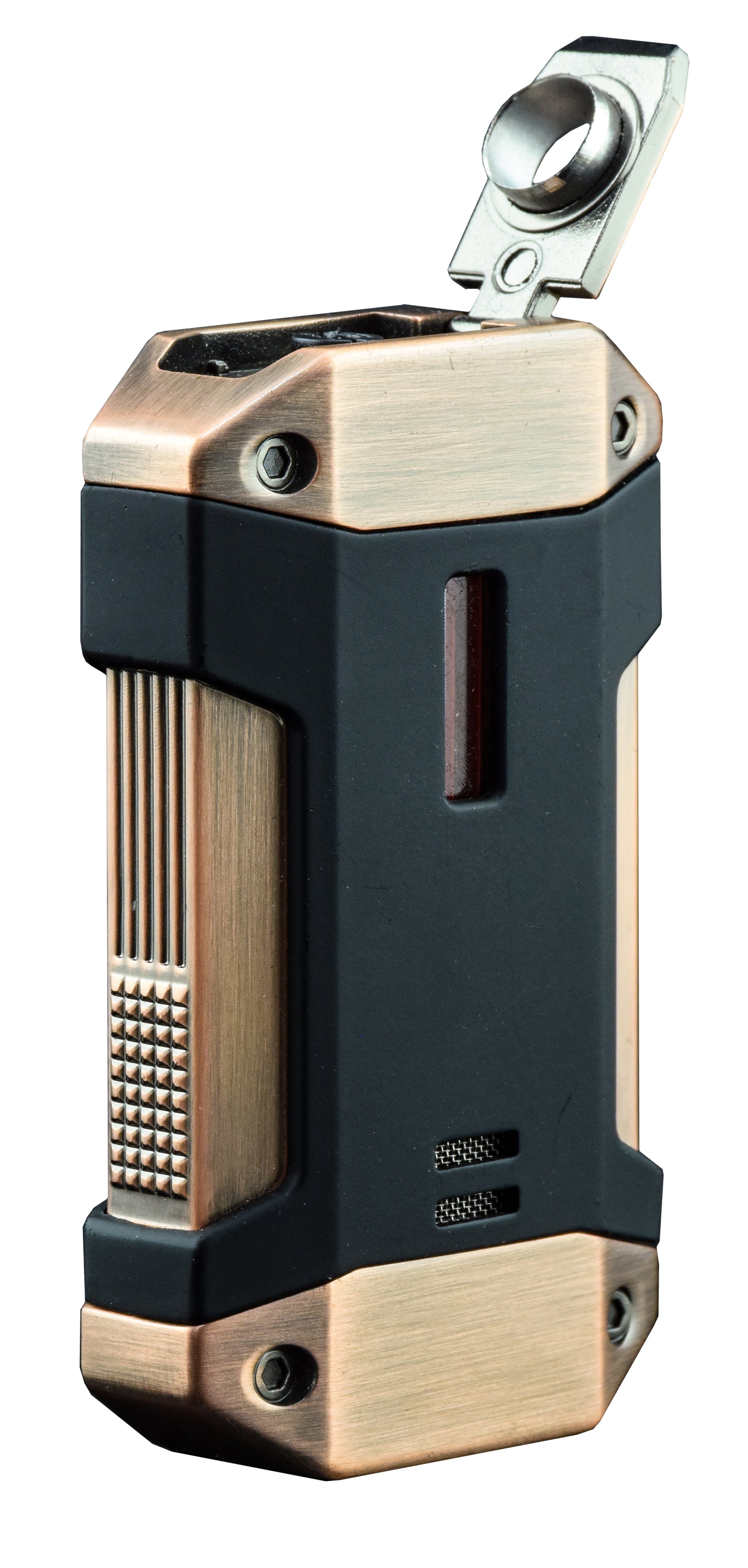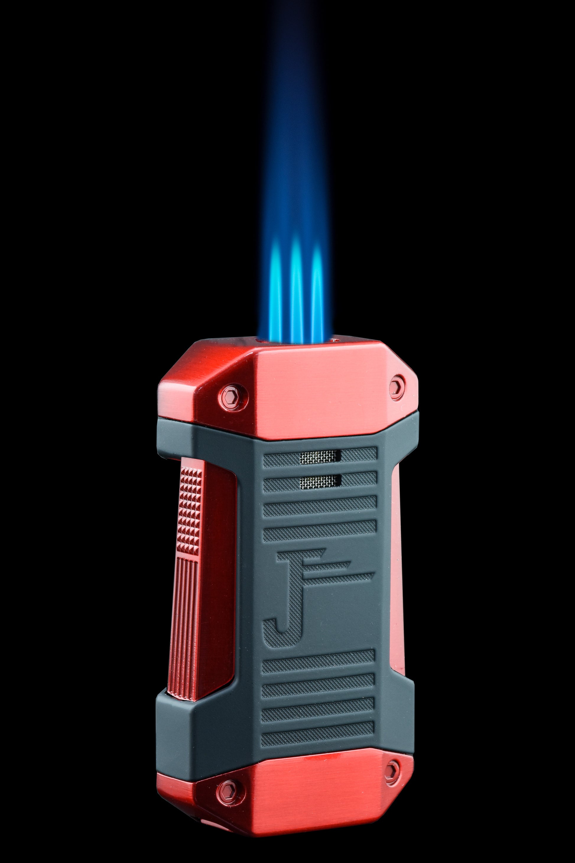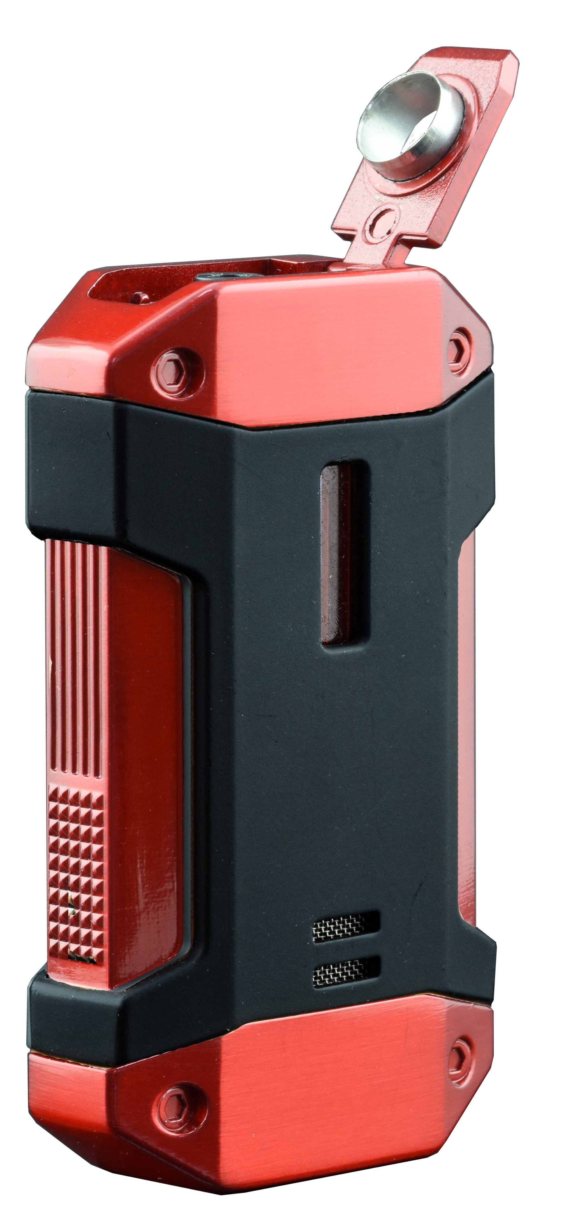 The Galleon Torch: the perfect gift packaged in a handsome box. Enjoy the convenience of a single-action triple flame torch, fold-out punch cutter, and adjustable flame. This butane refillable torch also features a fuel window, making it a must-have for any cigar aficionado. Available in copper & black or red & black!